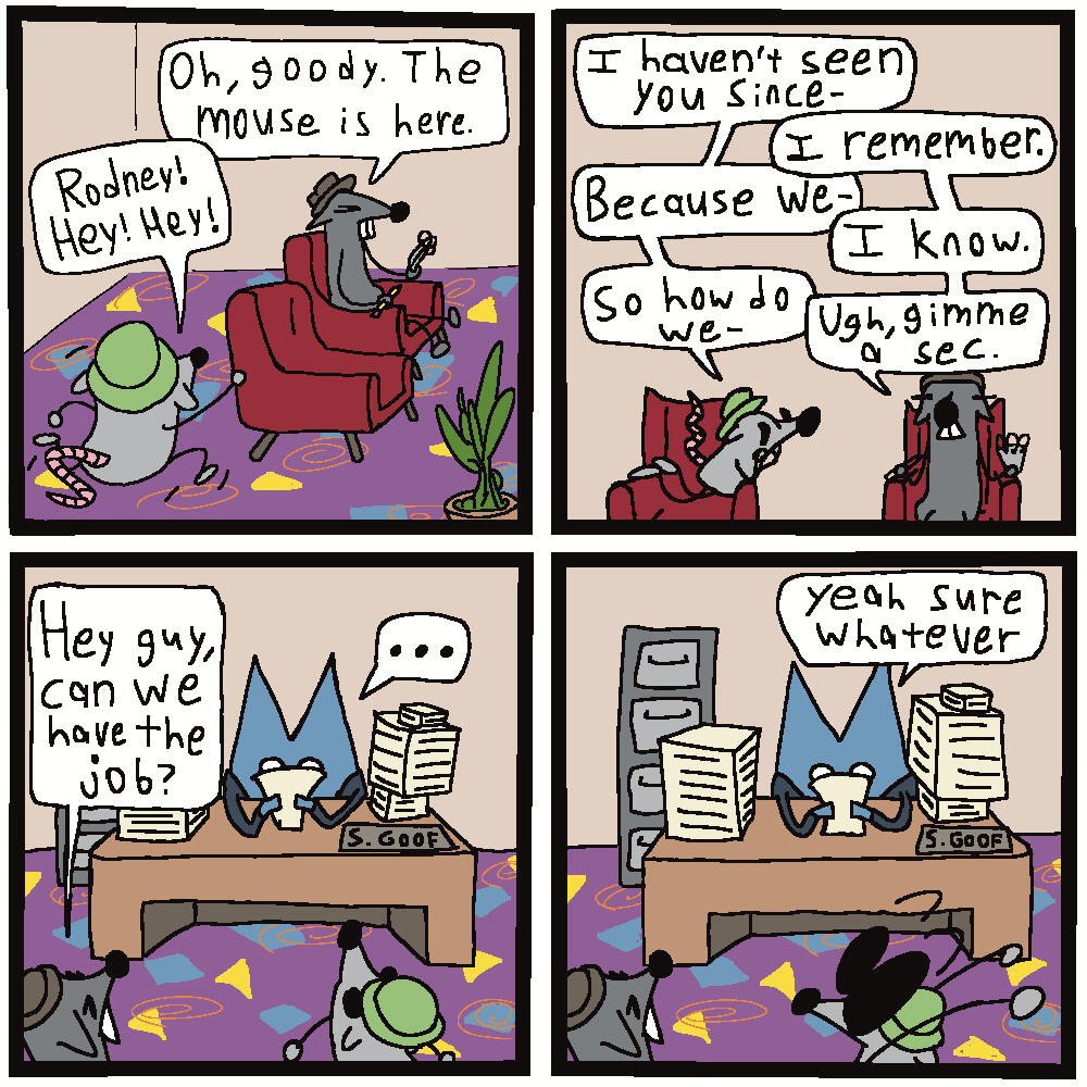 A webcomic by Jonas Clagett about a mouse and all its wonderful pals